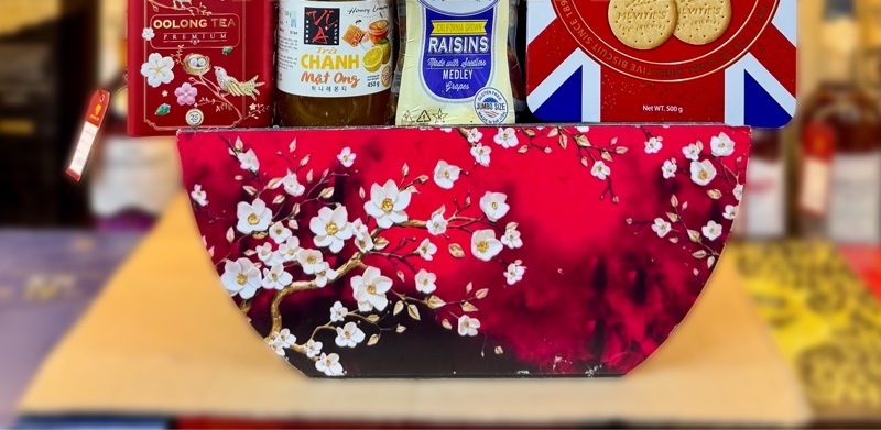 Khay bầu bông trắng đỏ